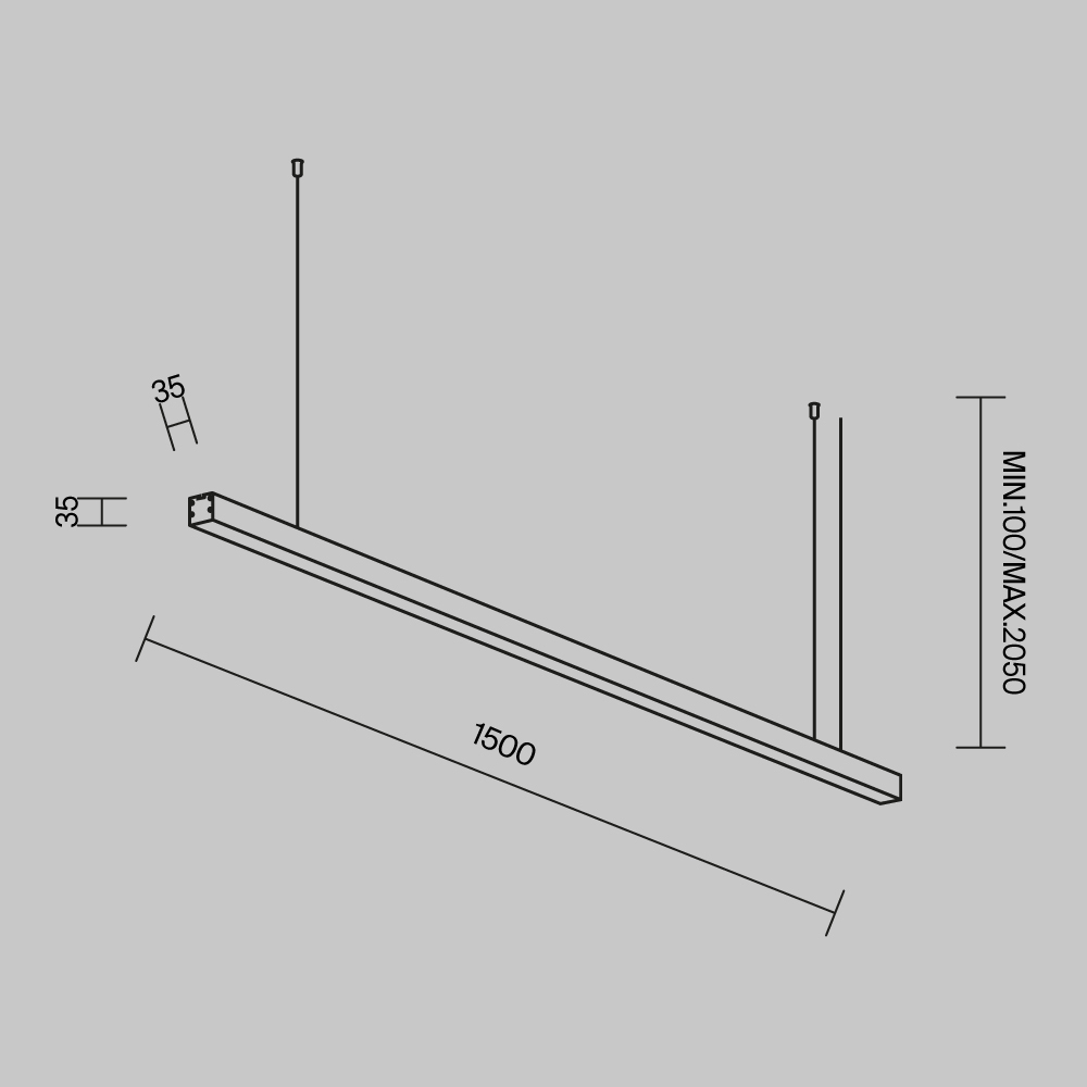 Линейный светильник подвесной 3000K 35x35 30 Вт (Черный, 1,5 м) LL312013