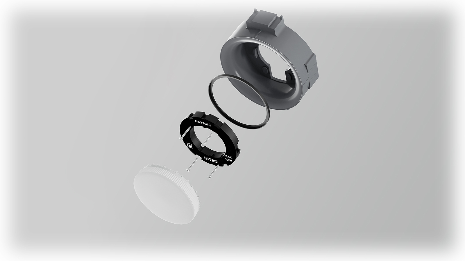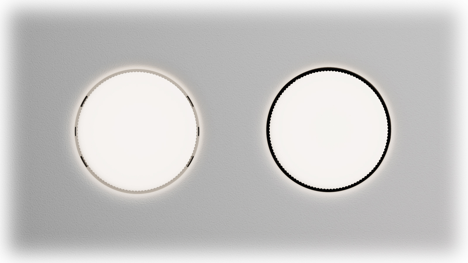 Теневой эффект и однородный монолитный эффект благодаря черному и белому цоколю в светильниках Intro GX53.