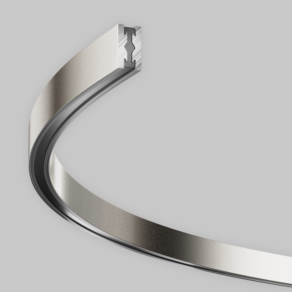 Материал корпуса – алюминий. Изготавливается в двух цветах – черном (порошковое окрашивание) и в цвете латунь (гальваническое покрытие). Круглая и полукруглая конструкция шинопровода предусматривает подвесную или накладную установку. Входит в состав трековой низковольтной системы (24В). Крепление светильников производится при помощи неодимовых магнитов. Предусмотрен обширный ассортимент комплектующих.