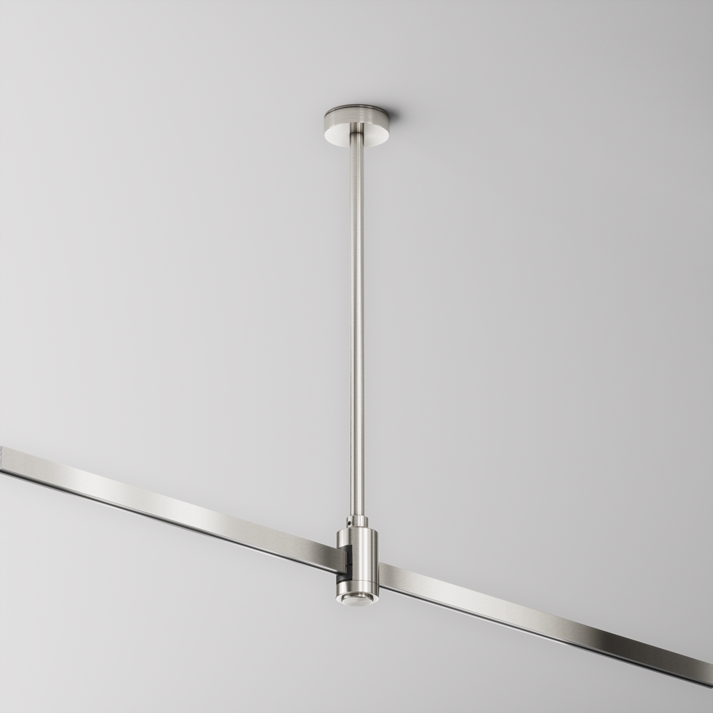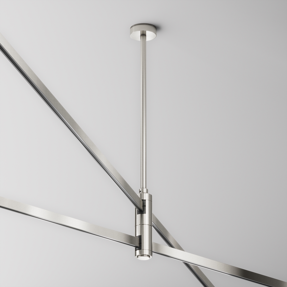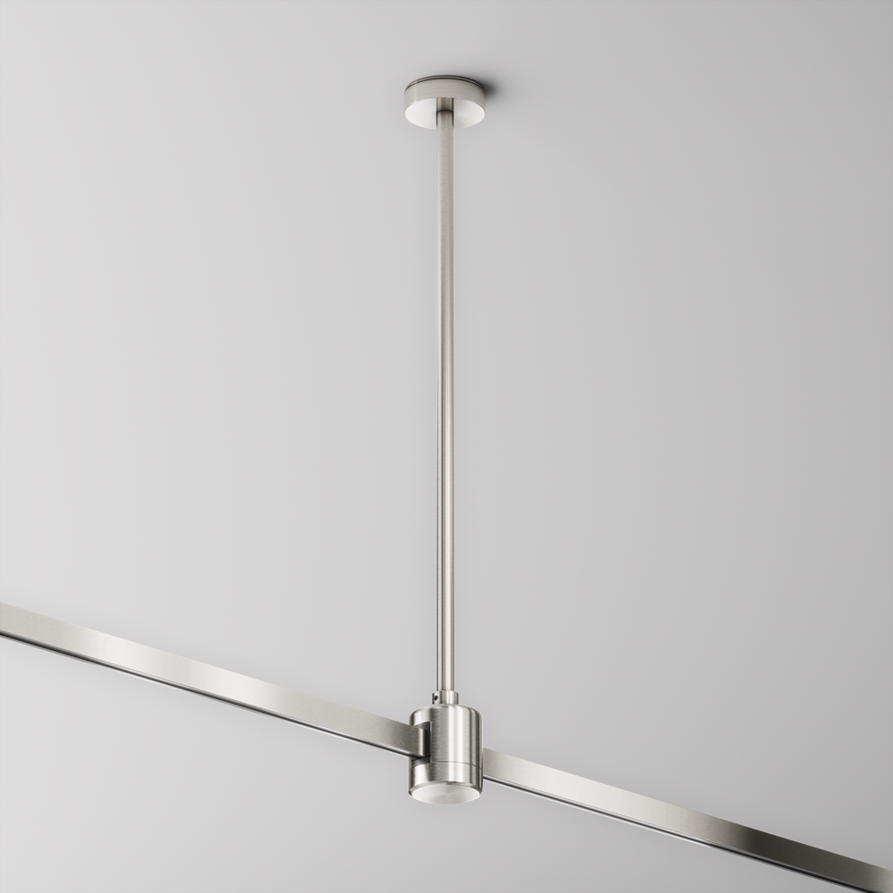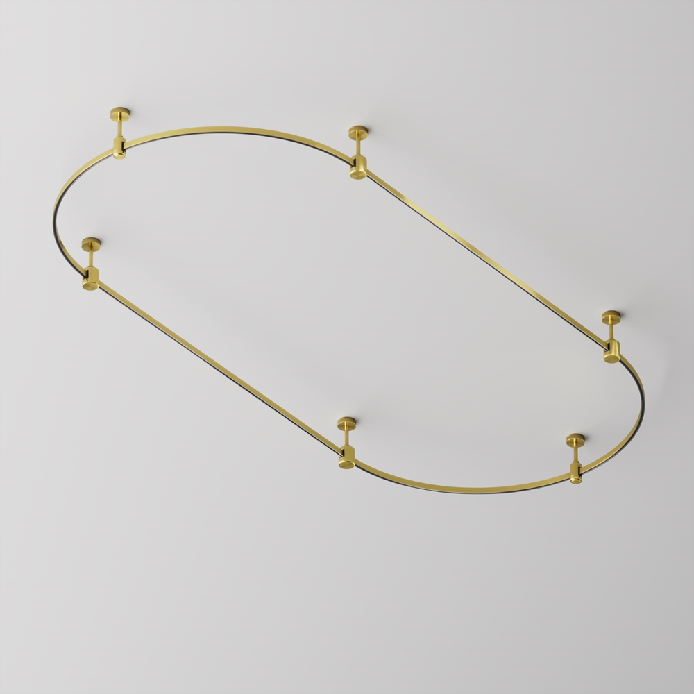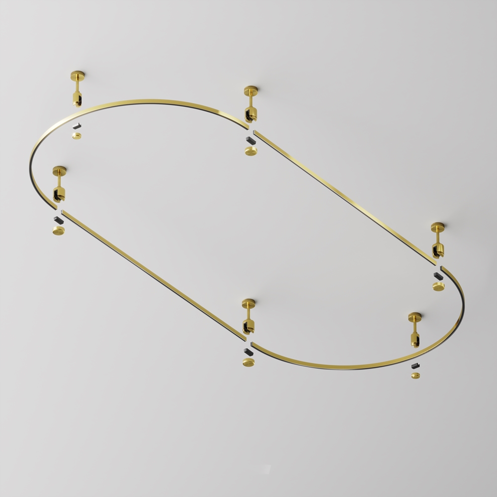 Материал корпуса – алюминий. Изготавливается в двух цветах – черном (порошковое окрашивание) и в цвете латунь (гальваническое покрытие). Круглая и полукруглая конструкция шинопровода предусматривает подвесную или накладную установку. Входит в состав трековой низковольтной системы (24В). Крепление светильников производится при помощи неодимовых магнитов. Предусмотрен обширный ассортимент комплектующих.