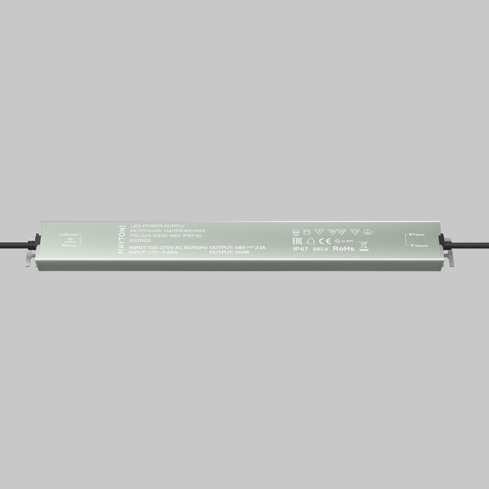 Источник напряжения PSL023-100W-48V-IP67-SL с гальванической развязкой для светодиодных изделий. Степень защиты от пыли и влаги IP67 позволяет использовать устройство как в сухих, так и во влажных помещениях, а также на улице при соблюдением требований к установке. Благодаря своим минимальным размерам устанавливаются в ограниченных пространствах.