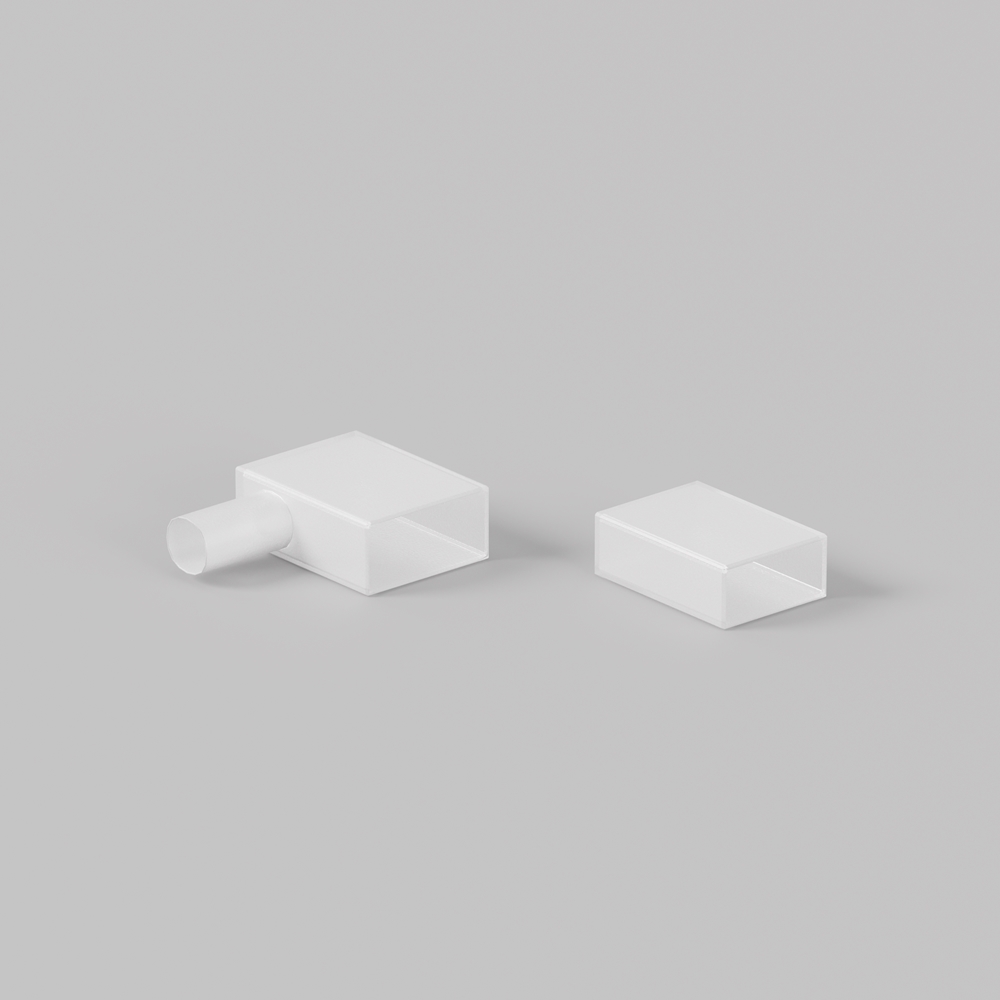Заглушки LNM-0410-T-EC для гибкого неона MINI 10x4 мм. Комплект включает в себя одну заглушку с выводом провода питания в направлении вверх/вниз и одну глухую заглушку.
