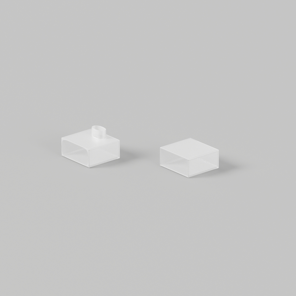 Заглушки LNM-0410-S-EC для гибкого неона MINI 10x4 мм. Комплект включает в себя одну заглушку с выводом провода питания в направлении вбок и одну глухую заглушку.