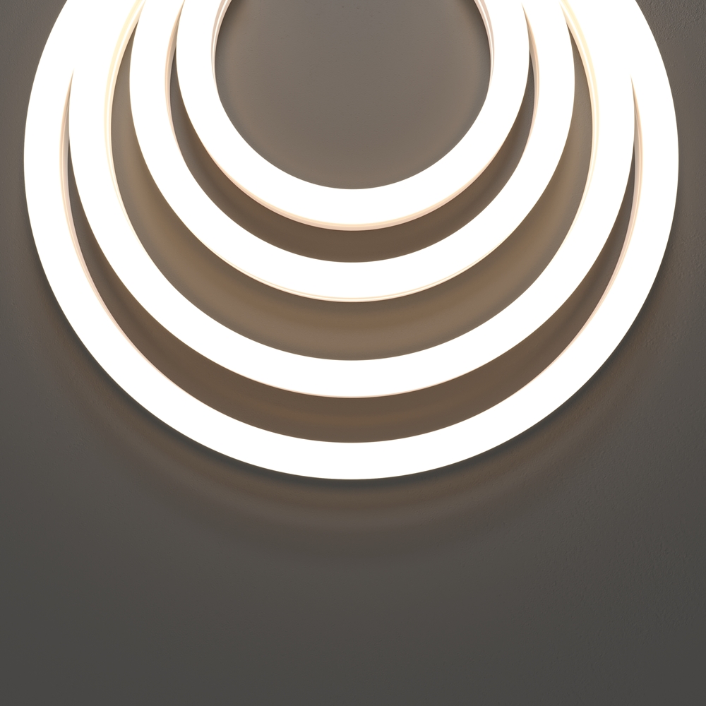 Гибкий неон с вертикальным изгибом позволяет создавать динамичные световые решения, огибая контуры в вертикальной плоскости. Мягкий рассеянный свет, направленный вверх, идеально подойдет для контурной подсветки потолков, ниш, элементов интерьера и фасадов зданий. Высокая степень защиты от пыли и влаги IP67 позволяет использовать неон как в сухих, так и во влажных помещениях, а также отлично подойдет для подсветки на улице.