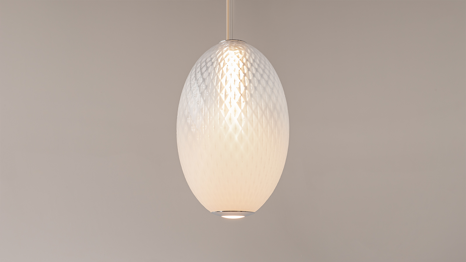 Подвесные светильники серии представлены в двух дизайнах: металлическая арматура цвета глянцевый хром с белым стеклянным плафоном, имеющим гладкую поверхность и нанесённым изнутри рельефом; металлическая арматура черного цвета с антибликовым покрытием и черный стеклянный плафон с наружным рельефом.
