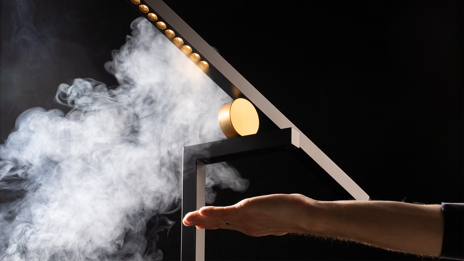 Идея, воплощенная в торшере ― забота о человеке, его удобстве, понимание эмоций. Идея совмещается с лаконичностью и элегантностью формы. Датчики реагируют на движение руки и позволяют диммировать освещение.
