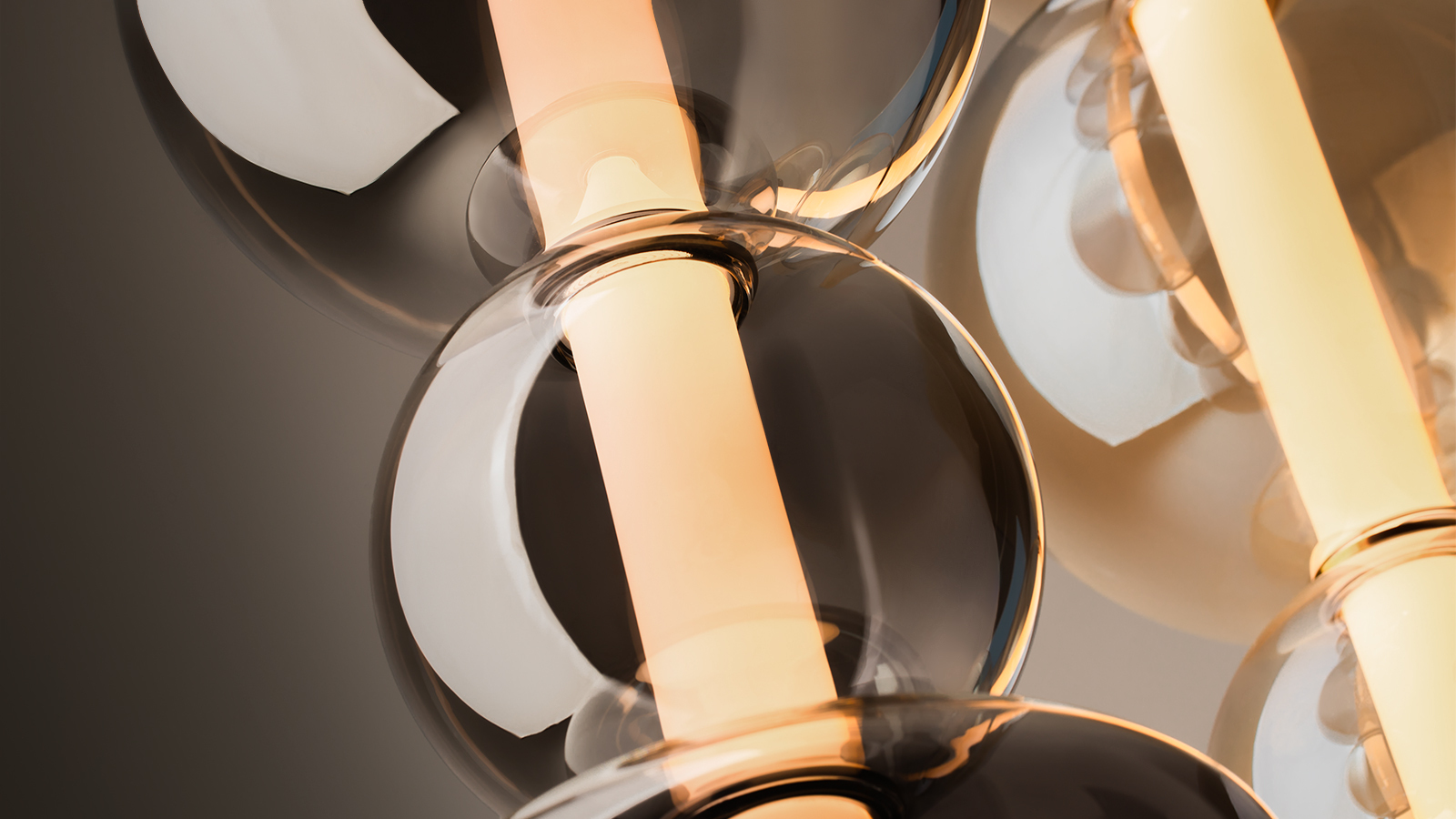 Плафоны изготовлены из выдувного стекла: такая технология позволила придать им оригинальную футуристичную форму.