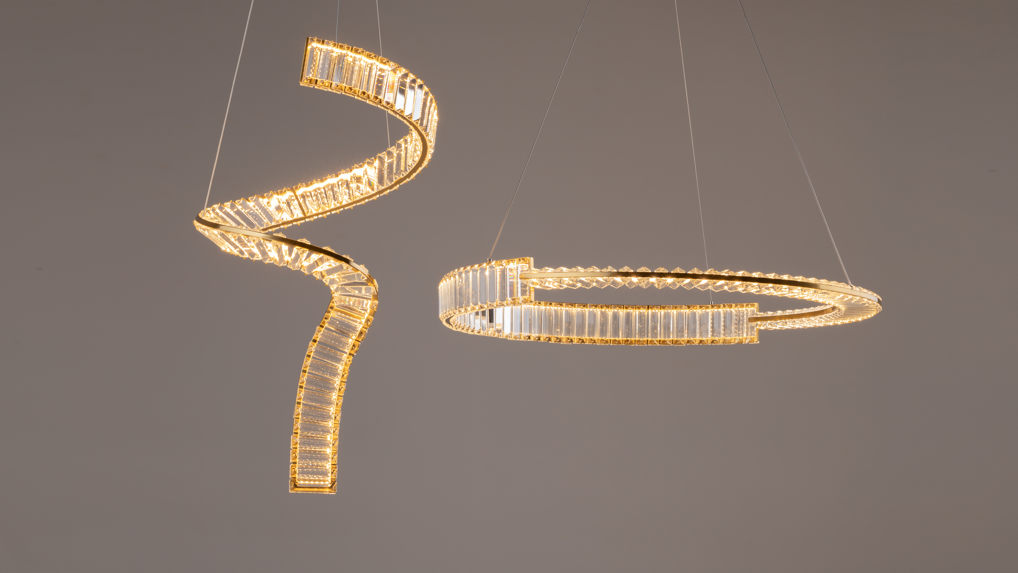 LED-источник света обеспечивает равномерную яркую подсветку, подчеркивая оригинальный силуэт. Высокий индекс цветопередачи 90Ra не искажает восприятие оттенков. В серию входят подвесные модели различного диаметра и с разным количеством ярусов, подвесной светильник в виде спирали, а также вытянутые по горизонтали подвесные светильники разной длины.