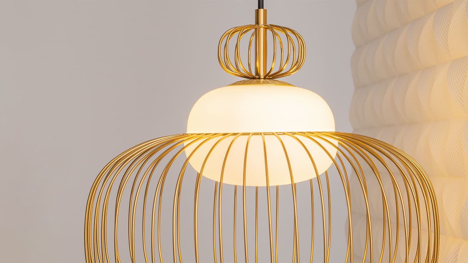 Внешне невесомая конструкция с незаметным креплением проволочного плафона создает впечатляющий эффект левитации, превращая светильник в парящий под потолком элемент дизайна.