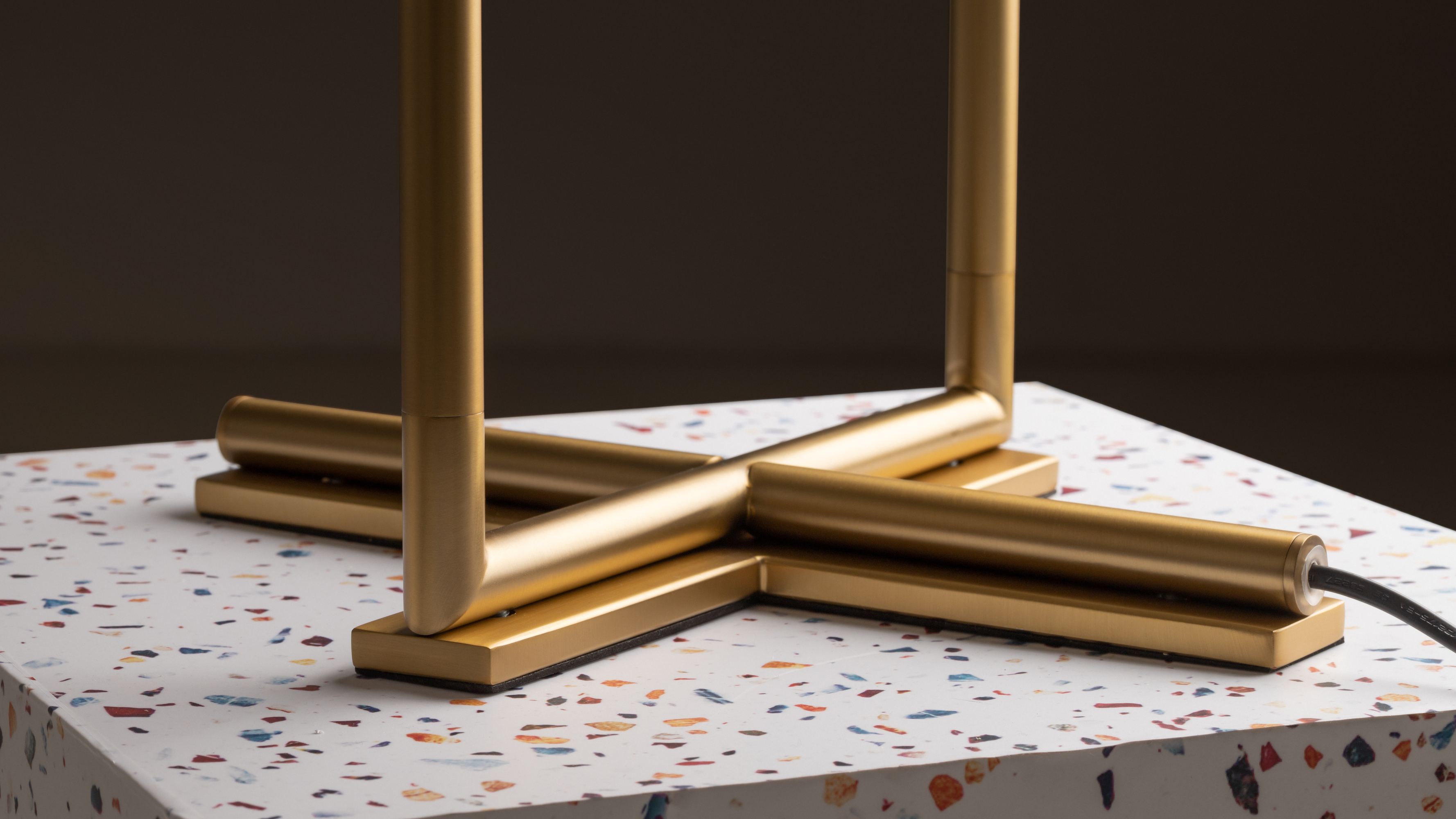 Торшер имеет крестообразное основание, благодаря чему его можно расположить вплотную к рабочему столу, кровати, дивану или же разместить между разными предметами интерьера.